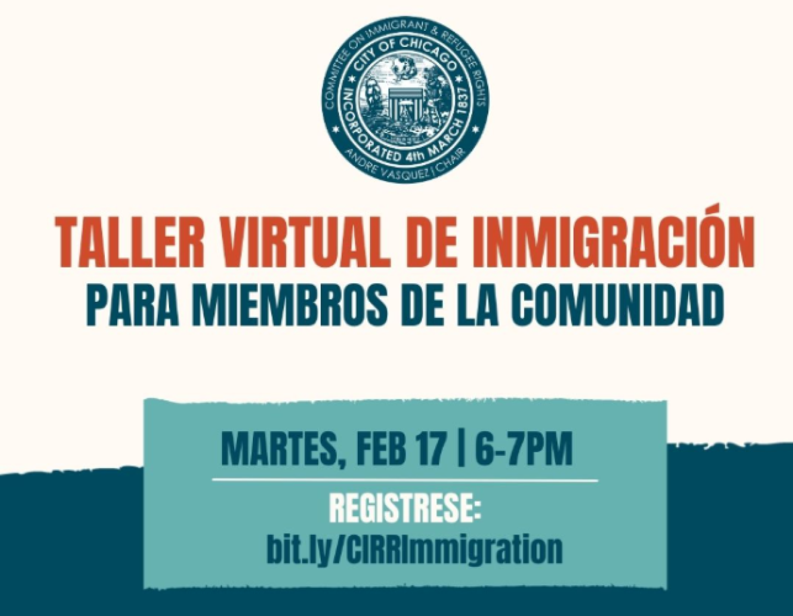 Acompáñanos a una sesión informativa virtual sobre inmigración. Este evento virtual está dirigido a miembros de la comunidad afectados o interesados en conocer los último actualizada sobre los cambios en la ley de inmigración relacionados con las nuevas políticas, el aumento de la actividad de ICE y lo que se puede esperar, así como sobre cómo pueden apoyar a la comunidad.