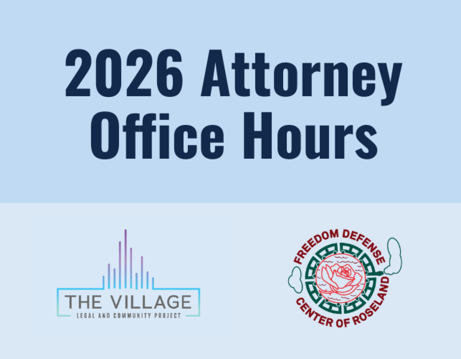 Have a question about a civil legal issue? Attorneys from The Village and Legal Community Project will be available to provide brief advice and counsel, limited representation, and full representation on the following civil legal issues: child support, sealing and expungement, Power of Attorney, parenting time, debt collection, landlord and tenant rights, and driver's license reinstatement. Walk-ins are welcome!