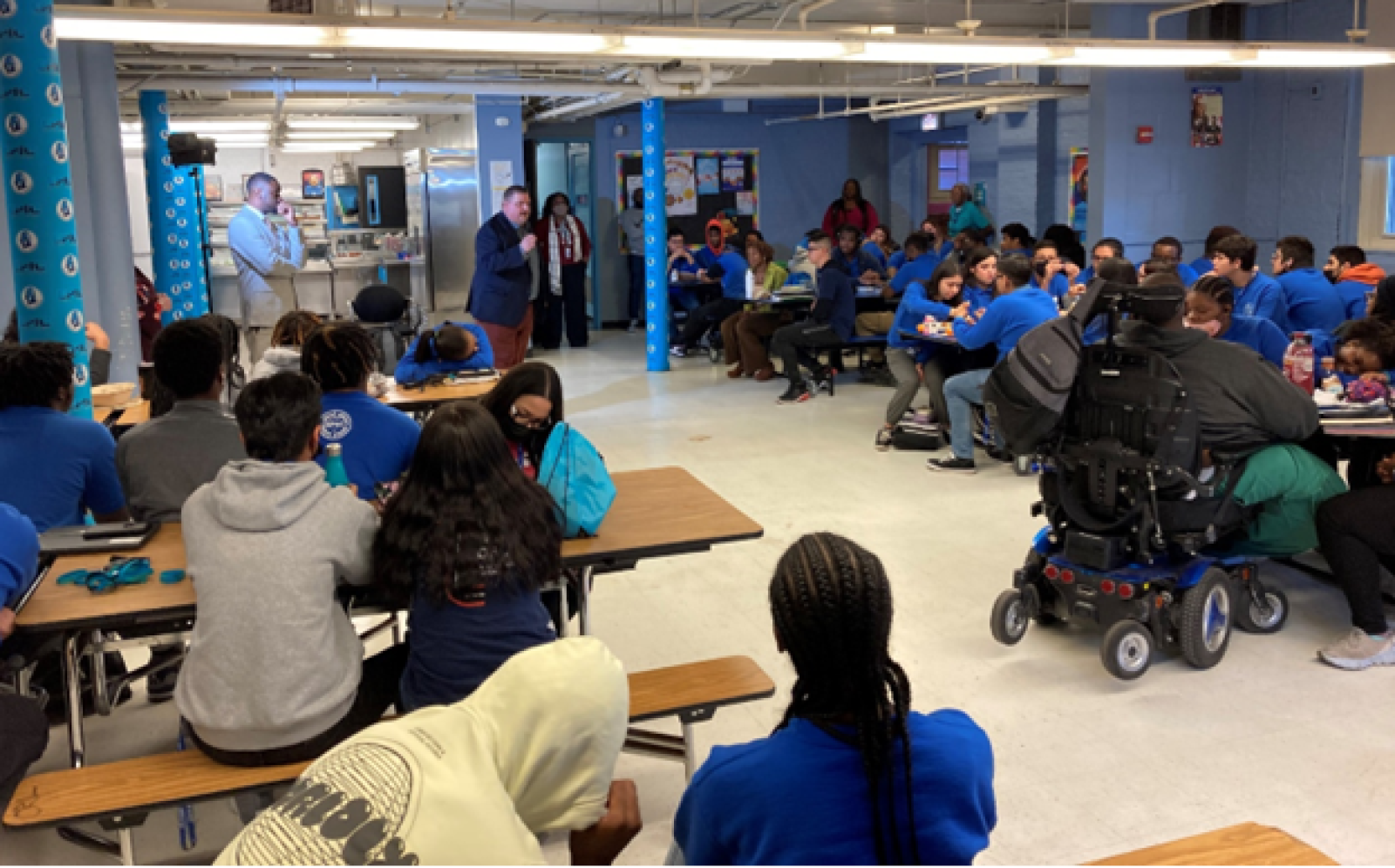 In the photo, staff from our office answer students’ questions about public defenders and the rights of the accused.