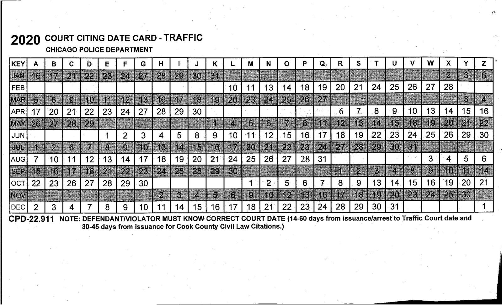 2020 Traffic Key Dates