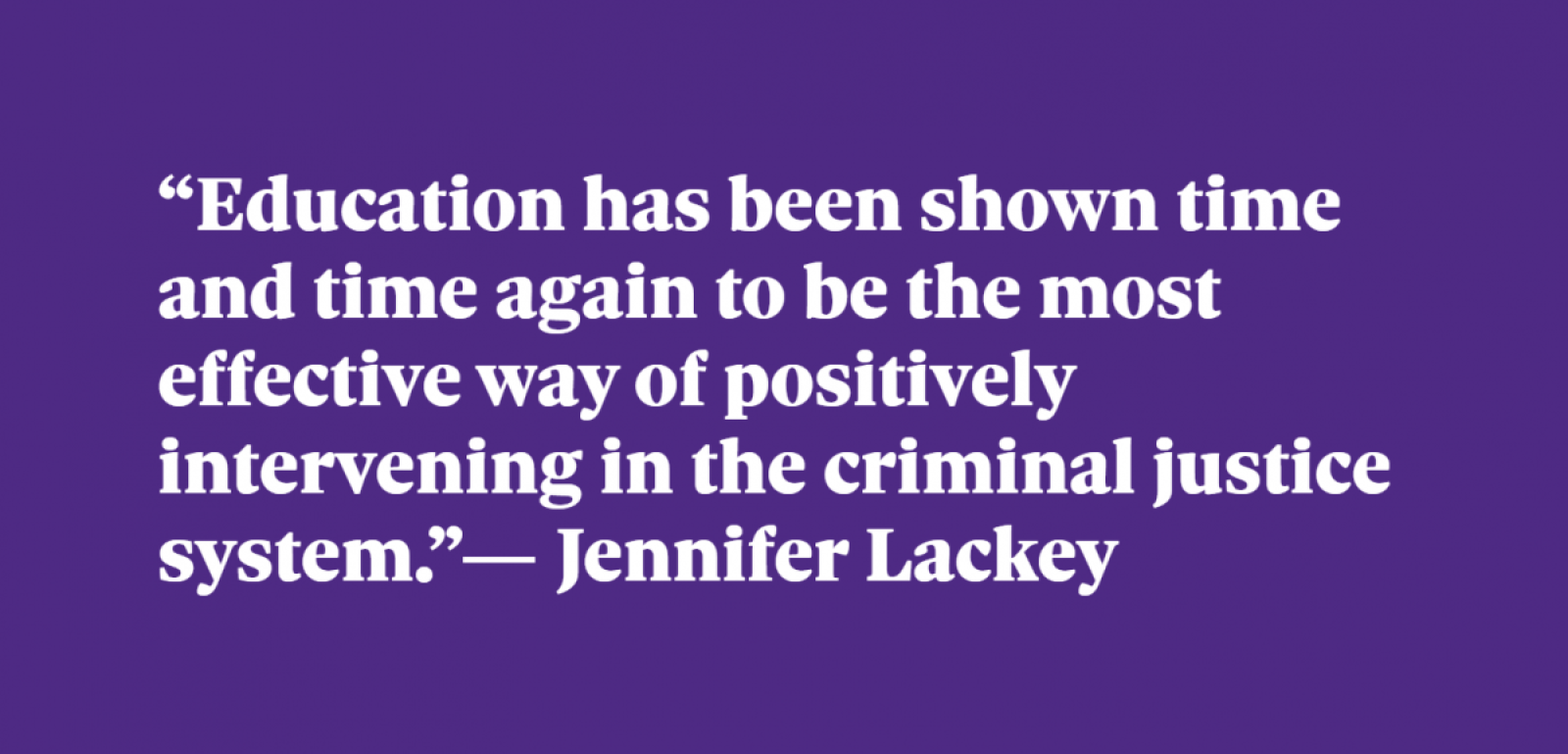 “I’m always surprised when people say we don’t know how to deal with violence, because we absolutely do,” says Lackey. “Education has been shown time and time again to be the most effective way of positively intervening in the criminal justice system.”